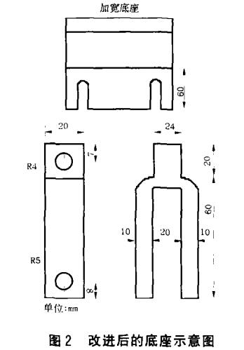 在維修工作中,常發(fā)現(xiàn)三相E型剎車電磁鐵變形,原因是電磁鐵動鐵芯經(jīng)常受到?jīng)_擊, 使動鐵芯與靜鐵芯接觸面被撞大,造成動鐵芯的活動導(dǎo)軌面受到磨損。一旦卡角動鐵芯與靜鐵芯吻合面不能很好地接觸,電磁鐵內(nèi)部將形成較大磁阻,引起線圈產(chǎn)生足以使線圈發(fā)熱燒毀的電流,致使電磁鐵線圈燒毀。當(dāng)3個線圈中任意1個燒毀,電磁鐵吸引力平衡被破壞,另外2個也就很快跟著燒毀,只好將3個線圈同時換掉。這種電磁鐵在 設(shè)計時因考慮到簡潔,動鐵芯與制動拉桿之間只有一根連桿,極易造成動鐵芯的不平衡使鐵芯被卡住,致使制動電磁鐵線圈發(fā)熱燒毀。在易燃易爆場所更換線圈時,必須裝上防爆裝置才能試車,這時無法觀察到鐵芯的動作情況,常常造成返工。為了克服電磁鐵線圈經(jīng)常燒毀的問題,經(jīng)過仔細(xì)觀察發(fā)現(xiàn),如果將制動剎車調(diào)節(jié)到佳狀態(tài)時,制動拉桿的力約在68.6—78.4N之間,完全可以用MQI-513型、吸引力為78.4N、行程為25em的牽引電磁鐵來代替原有的三相式E型電磁鐵。按圖1先將原來固定三相電磁鐵的底座加寬6ocm,然后按電磁鐵底板的尺寸鉆孔,把電磁鐵倒裝上去。為防止電磁鐵的活動鐵芯超行程滑脫出來在牽引電磁鐵活動鐵芯與制動器連桿之間,按圖2的尺寸重做一個。固定好電磁鐵后就可以把連桿與動鐵芯用鋼梢固牢。
