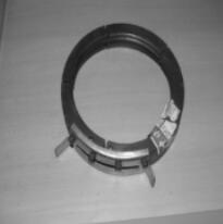2)圓環(huán)式導(dǎo)繩器 現(xiàn)在CD、MD型電動葫蘆上采用的是圓環(huán)式導(dǎo)繩器,該類導(dǎo)繩器由導(dǎo)繩螺母、鋼帶、壓繩彈簧、卡板等組成,見圖2。由于不僅能避免鋼絲繩的纏繞,保證電動葫蘆正常工作,延長鋼絲繩、卷筒的使用壽命,而且安裝拆卸與維護(hù)保養(yǎng)方便,被廣泛使用。