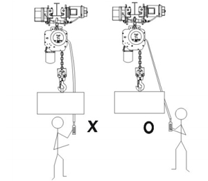 7、操作時嚴禁人員在吊運物下行走或前進方向以及嚴禁通過人員上方如下圖: