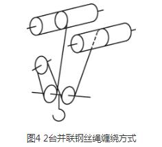 這種方式因結(jié)構(gòu)形式加大,使得對(duì)適用場合提出更高要求,不能很好地適應(yīng)空間小、吊鉤覆蓋范圍要求廣的場合。同時(shí)由于實(shí)際應(yīng)用過程中鋼絲繩內(nèi)應(yīng)力的釋放,在使用一段時(shí)間后,會(huì)出現(xiàn)鋼絲繩出繩和入繩不能同步,導(dǎo)致亂繩現(xiàn)象。