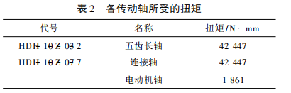 機(jī)體各傳動軸的扭矩:起重鏈條承受的載荷選用值,經(jīng)計(jì)算,行星齒輪減速器的各傳動軸所受的扭矩如表2所示:
